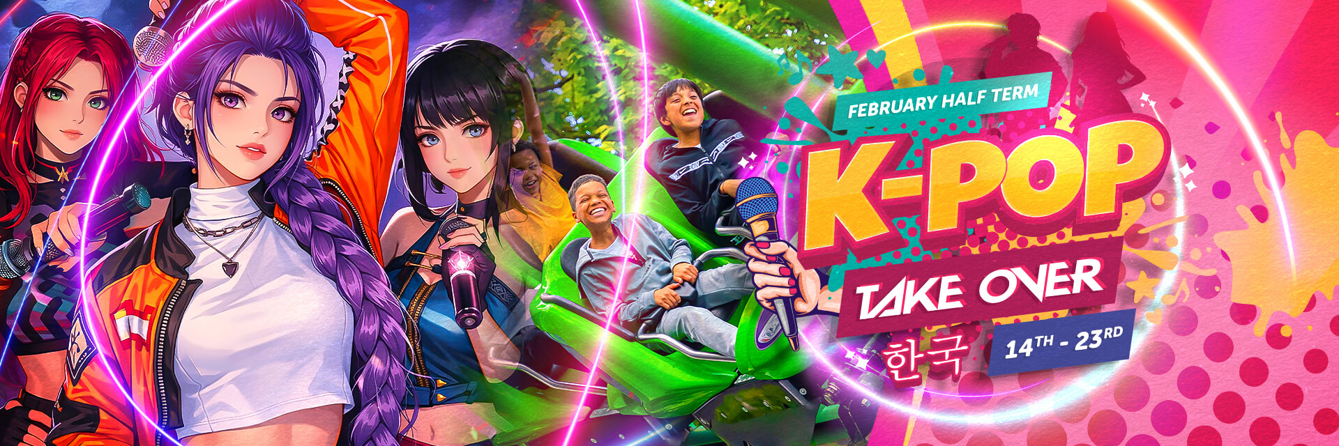 This February Half Term, Drayton Manor is bursting with energy, colour and unforgettable experiences from 14th – 23rd February. Step into a world where K-Pop takes centre stage, celebrating movement, music, dance and colour in a vibrant, high-energy atmosphere the whole family will love.