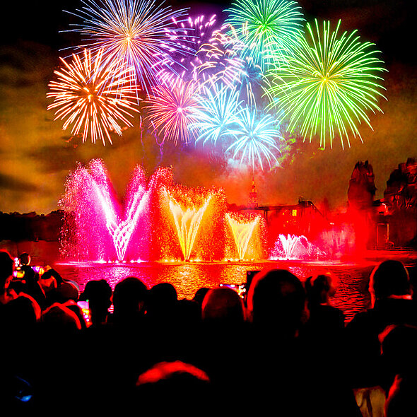 For the first time, our fireworks display will be fully integrated with our lake water show, combining dazzling pyrotechnics with choreographed fountains for a truly unmissable experience.