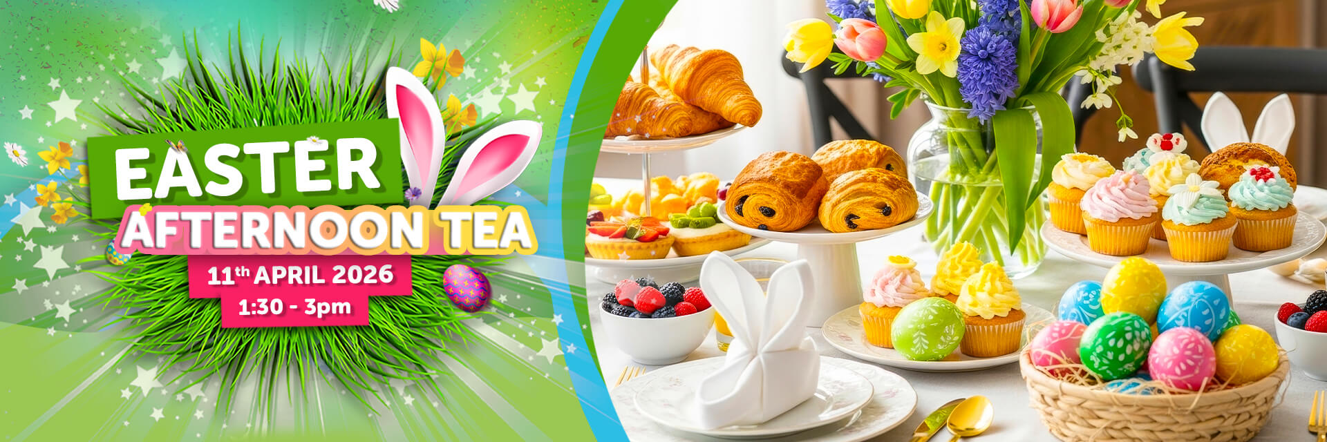 Indulge in a delicious selection of freshly made finger sandwiches, fluffy scones with jam and cream, and an irresistible array of Easter-themed cakes and pastries, all beautifully presented for a picture-perfect afternoon.